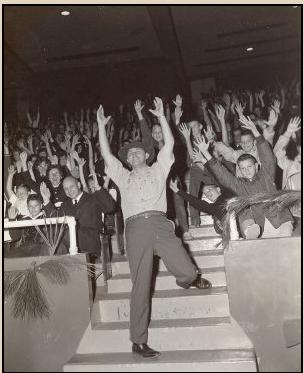 Left: Ahead of his time -- Ranger Hal leads a crowd in what looks like "the wave" in the early 1960s.