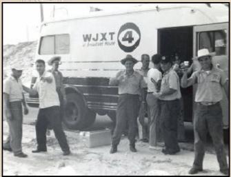 Right: Ranger Hal and WJXT crew near the Gator Bowl (now Alltel Stadium) in Jacksonville to cover the Soap Box Derby, July 1961.