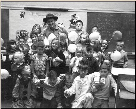 Right: Another photo from Brunswick: in October 1965 Ranger Hal visited the Arco School to help celebrate Halloween.